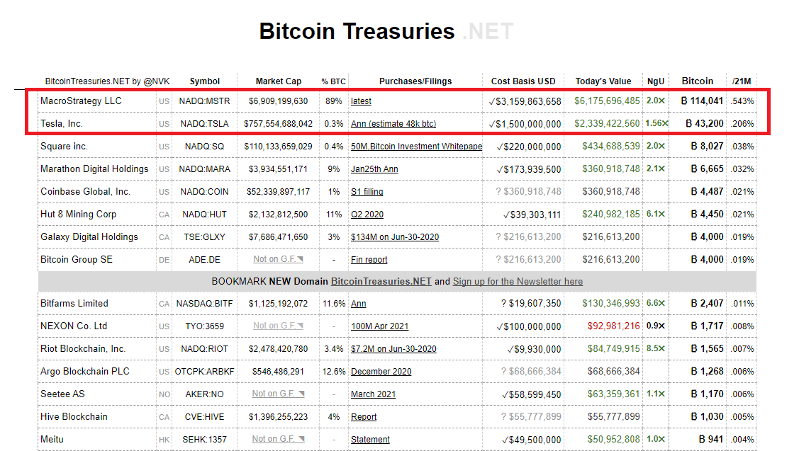 Để các bạn dễ hình dung, MicroStrategy và Tesla là hai công ty nắm giữ nhiều BTC nhất ở thời điểm hiện tại. Theo Bitcoin Treasuries, MicroStrategy hiện đang nắm giữ 114,041 BTC; Tesla nắm giữ 43,200 BTC. Như vậy, số lượng BTC này khi tung ra thị trường sẽ tương đương với MicroStrategy và Tesla cộng lại.