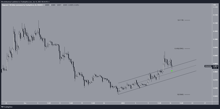 Mặc dù mức kháng cự Fibo thoái lui 0.618 đã từ chối giá Dogecoin, nhưng hiện tại nó đang xác thực kênh là hỗ trợ (biểu tượng màu xanh lá cây). Mặt khác, một sự cố trở lại kênh giá sẽ chỉ ra rằng chuyển động là điều chỉnh và mức thấp mới sẽ theo sau đối với meme coin này.
