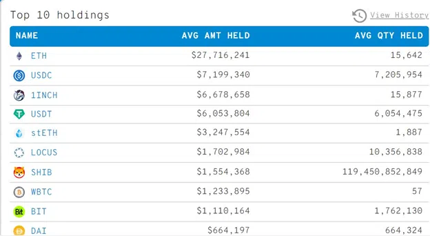 Số lượng 1INCH trung bình được nắm giữ là 15,877, tương ứng với 6.6 triệu USD. Số lượng USDT trung bình được nắm giữ là hơn 6 triệu USD một chút trong khi SHIB là khoảng 1.5 triệu USD.