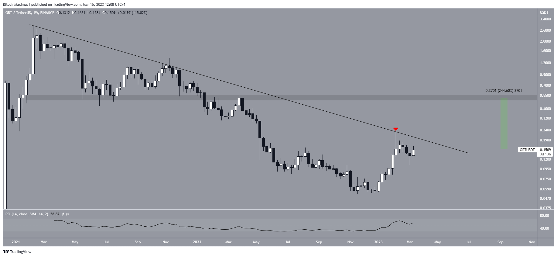 Mặc dù tăng, nhưng GRT hiện đang bị từ chối bởi đường kháng cự (biểu tượng màu đỏ). Tuy nhiên, chỉ báo RSI tuần vẫn trên 50. Đây được coi là một dấu hiệu tăng giá. Nếu giá GRT bùng nổ, nó có thể hướng đến mức kháng cự tiếp theo tại 0.52 USD, tăng 244% so với giá hiện tại. Tuy nhiên, nếu tiếp tục bị từ chối, giá GRT có thể quay lại mức thấp nhất trong năm gần 0.06 USD.