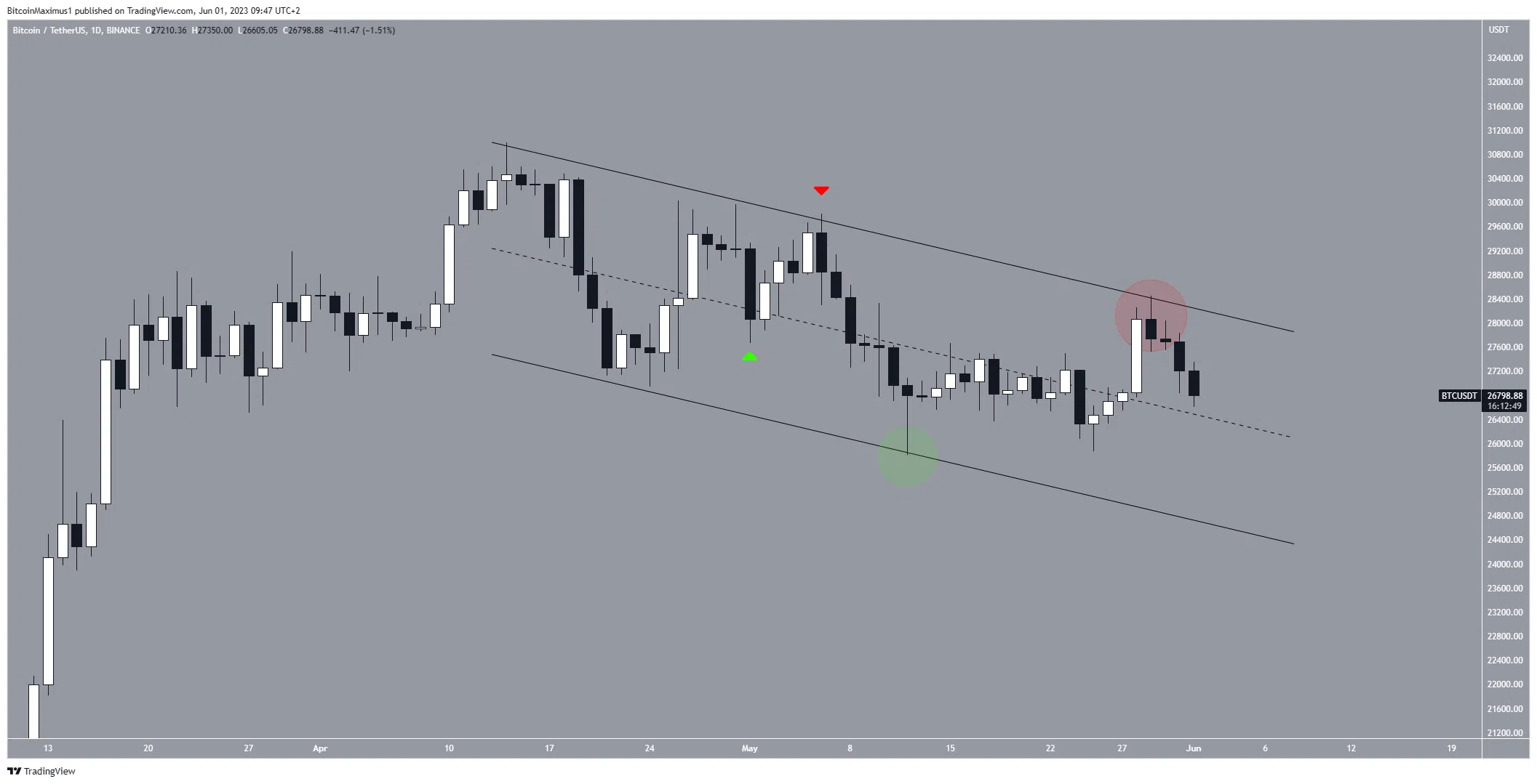 Do kênh song song giảm dần, có khả năng giá sẽ giảm xuống đường hỗ trợ của nó ở mức 25,000 USD. Tuy nhiên, một cú breakdown sẽ khiến giá giảm xuống còn 20,000 USD.