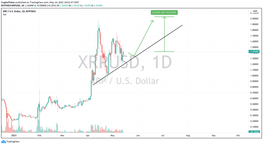 Vào năm 2018, giá XRP thậm chí còn chưa đạt đến mức 0.3 USD. Thế nhưng đến thời điểm hiện tại, XRP hiện đang dao động ở mức 1.42 USD. Giá của nó được dự đoán là sẽ sớm chạm mức 2 USD. Điều này có nghĩa là mang lại lợi nhuận 43%.