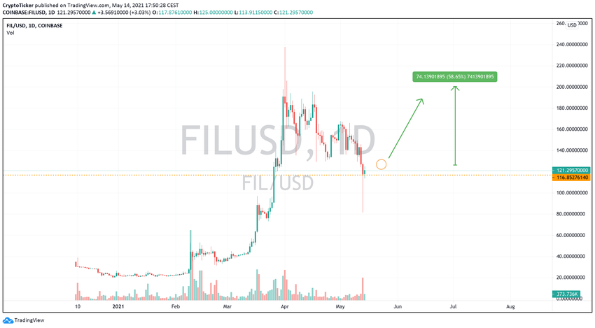 Ngoài ra, Rudi tuyên bố giá FIL có thể đạt 200 USD một lần nữa. Điều này có nghĩa là sẽ đem đến lợi nhuận 58% cho các nhà đầu tư.