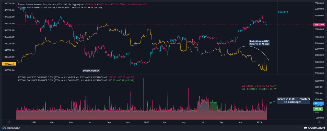 #1. Áp lực bán từ các Bitcoin Miners còn tiếp diễn khi sự kiện Bitcoin Halving càng gần