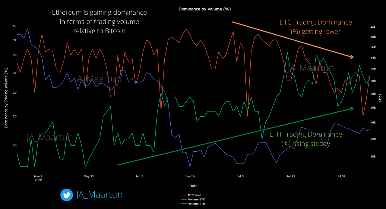@JA_Maartun nhận định rằng Ethereum đang đóng vai trò dẫn dắt thị trường. Nhận định này được rút ra từ quan sát sau.