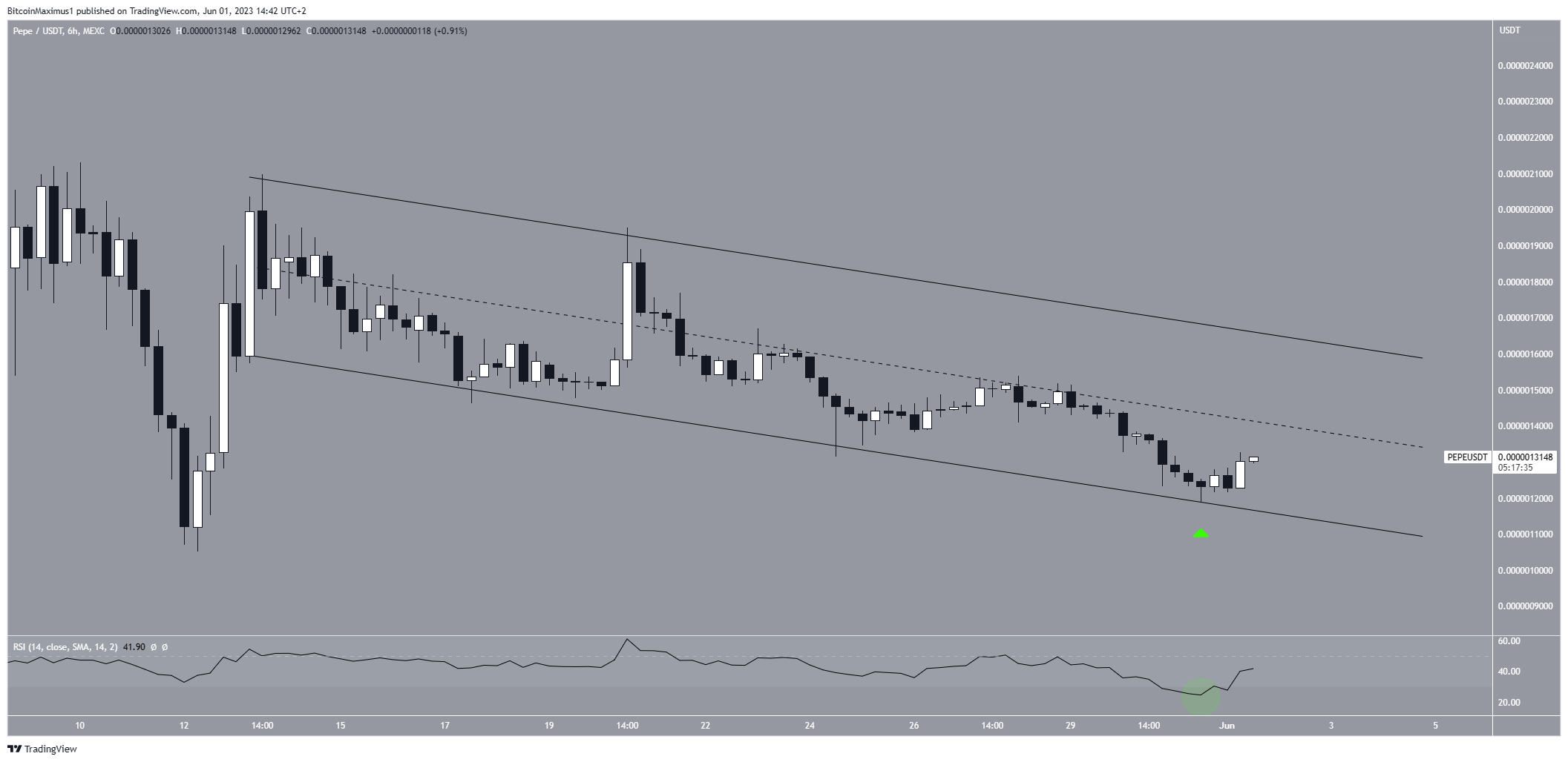 Sponsored SponsoredBất chấp đợt sụt giảm này, có vẻ như trong tháng 6, PEPE sẽ phục hồi phần nào. Có một vài lý do để giải thích cho điều này. Đợt lao dốc kể từ ngày 13 tháng 5 đã hình thành bên trong một kênh song song giảm dần.