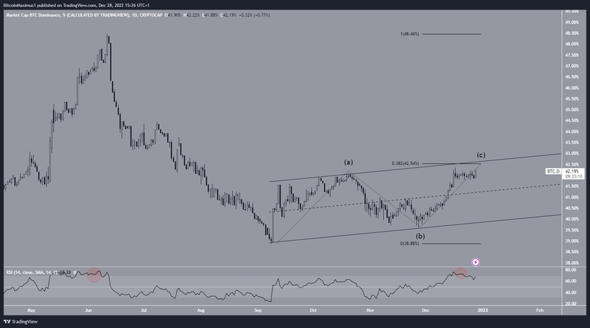 BTC.D bị ảnh hưởng nặng nề bởi các chuyển động của ETH, vì ETH là loại Altcoin lớn nhất dựa trên vốn hóa thị trường của nó. Tuy nhiên, nó cũng di chuyển theo những thay đổi trong phần còn lại của thị trường tiền điện tử. Biến động của BTC.D hiện được chứa bên trong một kênh song song tăng dần. Các kênh như vậy thường chứa các chuyển động điều chỉnh, có nghĩa là khả năng xảy ra sự phá vỡ từ nó là rất cao.