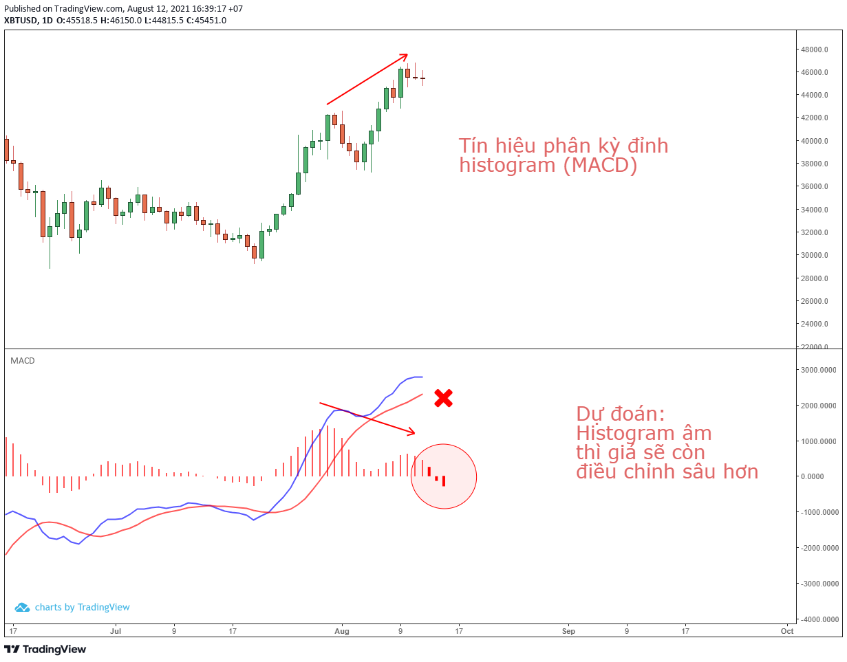 Sponsored#2. Histogram của chỉ báo MACD-H cũng tạo tín hiệu phân kỳ đỉnh