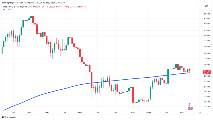 Vấn đề thứ ba sẽ xuất hiện vào tháng 6 năm 2023 là áp lực bán gia tăng khi Bitcoin giảm xuống dưới 27,000 USD.