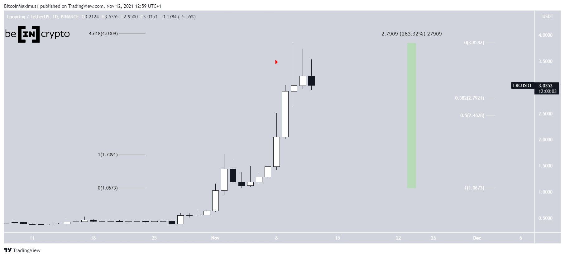 Giá LRC đã tăng với tốc độ nhanh chóng kể từ ngày 4 tháng 11. Giá LRC đã tăng 263% chỉ trong vòng sáu ngày. Đà tăng này đã đưa LRC tới mức đỉnh mới tại 3.85 USD vào ngày 10 tháng 11.