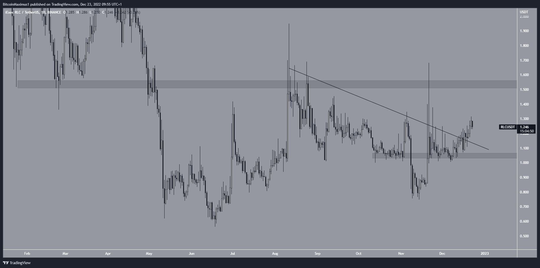 Vị trí thứ 4 trong top 5 Altcoin tăng mạnh nhất tuần là iExec RLC. Giá RLC đã giảm xuống dưới đường kháng cự giảm dần kể từ đầu tháng 8. Chuyển động đi xuống đã dẫn đến mức thấp 0.748 USD vào ngày 14/11. Giá đã tăng kể từ đó và thoát ra khỏi đường kháng cự vào ngày 17/12. Nó cũng đã lấy lại vùng kháng cự 1.05 USD.
