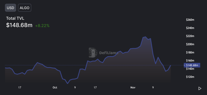 Hơn nữa, Algorand cũng chứng kiến tổng giá trị bị khóa giảm xuống. Điều này cho thấy các nhà đầu tư tổ chức đang mất niềm tin. Algorand TVL đã giảm gần 50% trong suốt tháng 11.