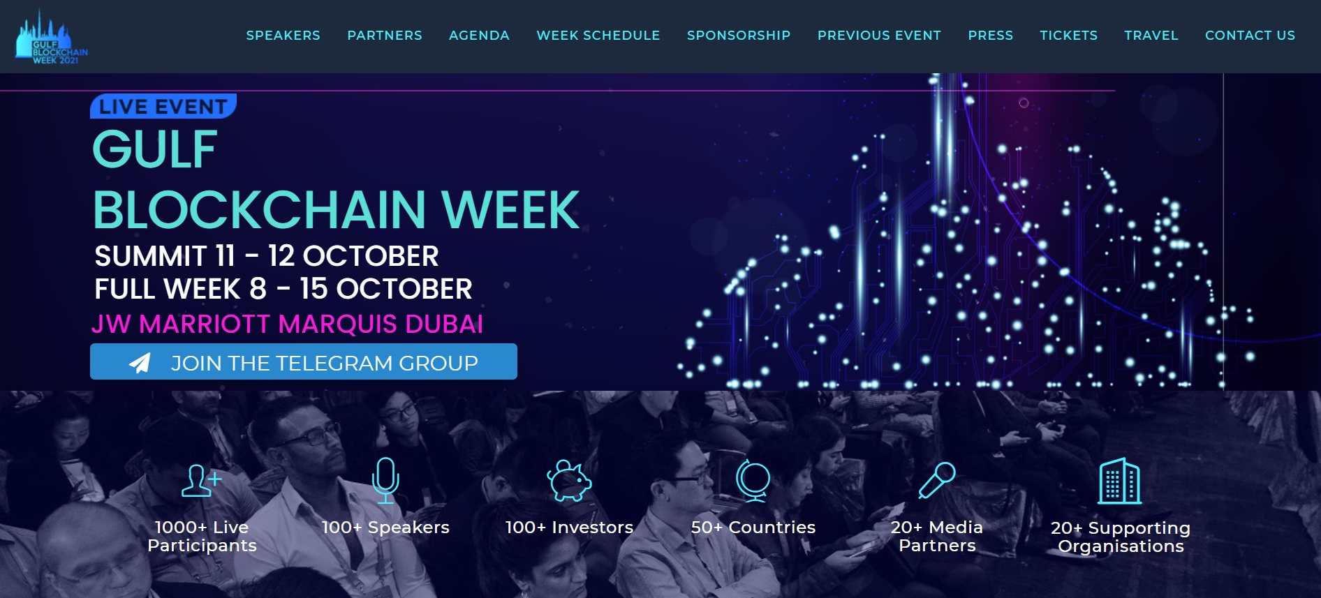 Gulf Blockchain Summit hay còn gọi là tuần lễ blockchain Gulf sẽ kéo dài từ ngày 11 – 15 tháng 10. Thật trùng hợp, sự kiện cũng được tổ chức tại một địa điểm khác của Dubai. Gulf Blockchain Summit được tổ chức quy mô lớn với số khách tham gia đến từ 50 quốc gia và được 20 nhà tài trợ.