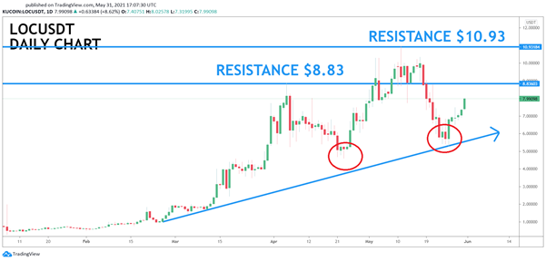 Giá LOC cũng di chuyển cùng chiều với những đồng tiền điện tử lớn khác nhưng chắc chắn nó đang phục hồi nhanh hơn.