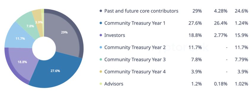 Việc mở khóa token BLUR dành cho những người đóng góp cốt lõi, nhà đầu tư và cố vấn sẽ kết thúc vào tháng 6/2027. Họ sẽ nhận được lượng token BLUR trị giá lần lượt là 870 triệu USD, 564 triệu USD và 36 triệu USD theo mức giá hiện tại. Tổng nguồn cung mã thông báo này tối đa là 3 tỷ. Theo dữ liệu BeInCrypto ghi nhận từ Etherscan, hiện có 51,415 người nắm giữ.