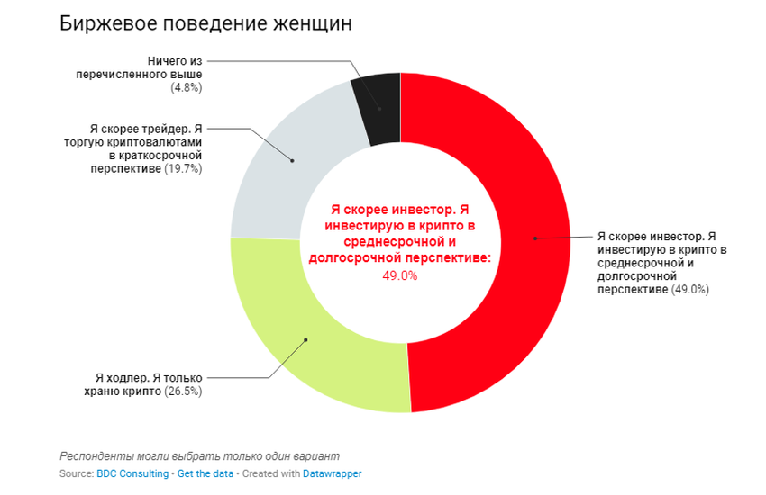 Các chuyên gia của BDC Consulting đã thực hiện phỏng vấn hơn 400 người thuộc phái nữ. Họ đang cố gắng tìm ra động cơ thúc đẩy những người phụ nữ đó đầu tư vào tiền điện tử. Và cách họ lựa chọn tài sản cho danh mục đầu tư của mình.