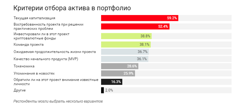 39% dựa vào thực tế là dự án đang được tài trợ bởi các quỹ tiền điện tử nào. Điều thú vị là chỉ 16% cho rằng họ quan tâm đến các nhân vật nổi tiếng nói tốt về dự án.