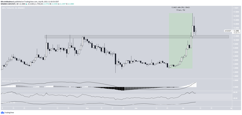 SponsoredĐến ngày 7 tháng 7, altcoin này đã chạm mốc ATH mới tại 16.70 USD. Con số này dẫn đến việc ghi nhận AXS đã tăng 484% trong mười lăm ngày.