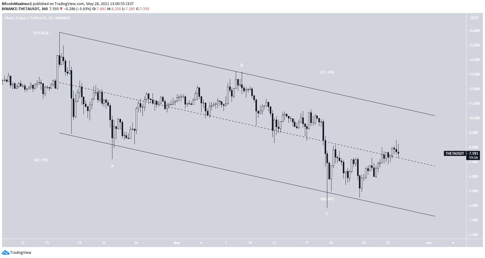 Tương tự như TFUEL, THETA đang giao dịch trong một kênh song song giảm dần. Đồng coin đã bị khóa ở khu vực này kể từ ngày 16 tháng 4, khi nó đạt mức giá cao nhất tại $15.88.