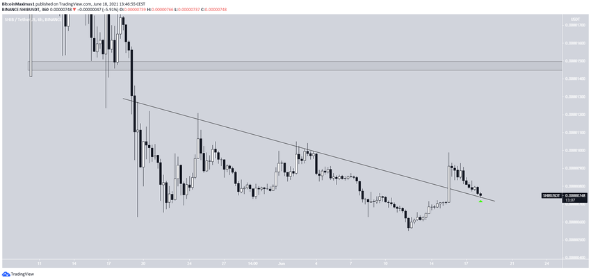 SHIB đã đạt mức giá thấp nhất mọi thời đại là 0.0000055 USD vào ngày 12 tháng 6. Nhưng sau đó, giá đã tăng lên vào ngày 15 tháng 6. Bởi nó đã thành công trong việc bứt phá ra khỏi đường kháng cự giảm dần.