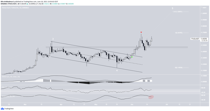 Altcoin TFUEL đã đột phá từ một kênh song song giảm dần vào ngày 1 tháng 6 (biểu tượng màu xanh lá cây). Giá của tiền điện tử này đã chạm được mốc ATH mới vào ngày 9 tháng 6.