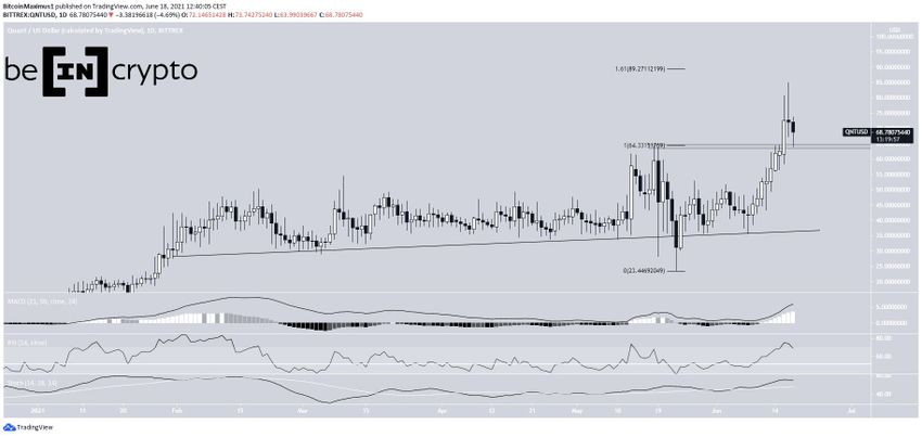 Hiện tại, QNT đang cố gắng tìm hỗ trợ trên mức cao nhất mọi thời đại trước đó, nằm gần mức 64.33 USD.