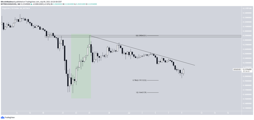 Vào ngày 9 tháng 7, giá DOGE chạm đến vùng hỗ trợ 0.191 USD (mức điều chỉnh Fibo 0.786) và phục hồi. Tại thời điểm viết bài, giá đang cố gắng tạo ra một sự bứt phá trong xu hướng tăng của đường nói trên.