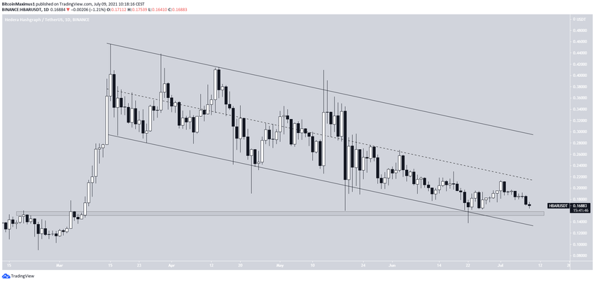 Lần phục hồi cuối cùng của HBAR xảy ra vào ngày 22 tháng 6 từ đường hỗ trợ của kênh. Đường này cũng trùng với vùng hỗ trợ ngang 0.155 USD.
