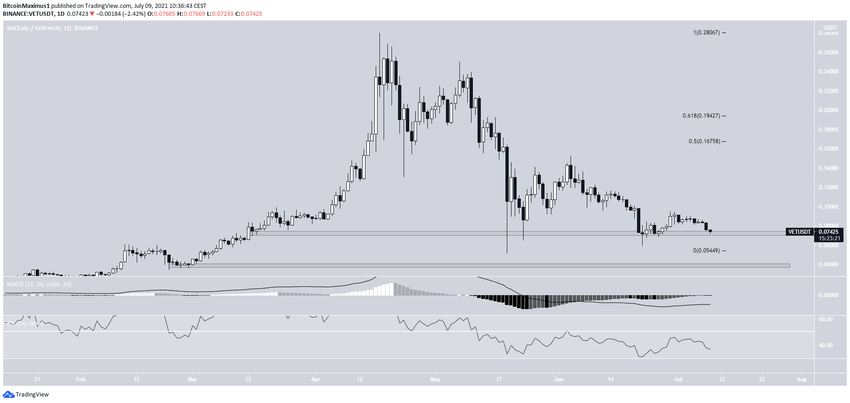 Sau đó, giá bắt đầu hồi phục trở lại nhưng việc này chỉ tồn tại trong thời gian ngắn. Điều này cũng đã khiến VET quay trở lại vùng hỗ trợ ngang 0.07 USD. Hiện tại, các biểu đồ không đưa ra bất kỳ tín hiệu đảo chiều tăng giá nào.