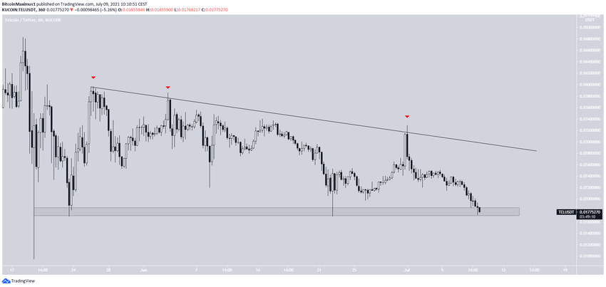 Kể từ ngày 26 tháng 5, giá của TEL đã giảm dần dọc theo đường kháng cự đi xuống. Trong khoảng thời gian này, altcoin đã bật lên ba lần. Trong đó lần gần đây nhất là vào ngày 1 tháng Bảy.