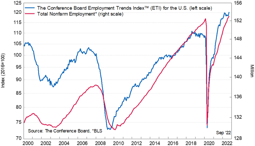 Chỉ số Xu hướng Việc làm là một con số quan trọng khác cho thấy thị trường việc làm có thể sẽ đi đến đâu trong vài tháng tới. Một con số cao hơn có nghĩa là công việc có khả năng sớm tăng lên. Ngược lại, một con số thấp hơn có nghĩa là công việc có thể sẽ giảm trong ngắn hạn.