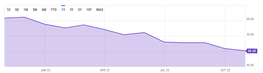Chỉ số PMI tháng 10/2022 giảm xuống 50.2. Chỉ số cao hơn kỳ vọng của các nhà phân tích là 50. Sau khi đạt 50.9 vào tháng trước. Trong lịch sử, các loại tiền tệ fiat như đô la Mỹ đã trở nên mạnh hơn, với chỉ số PMI trên 50.