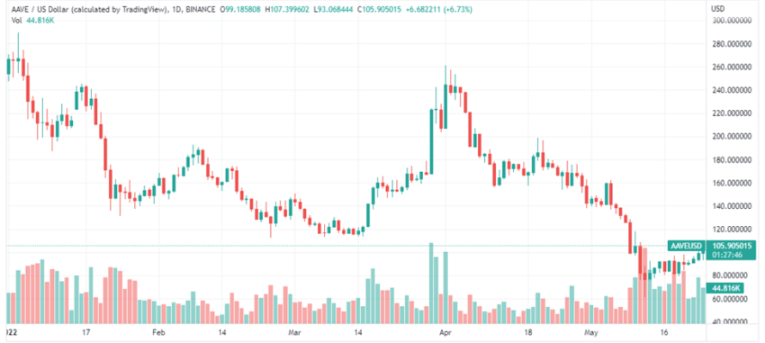 AAVE mở cửa vào ngày 1 tháng 1, tại mức 255.03 USD, đạt mức cao hàng năm là 284.65 USD vào ngày 3 tháng 1. Tại thời điểm viết bài, giá AAVE đang được giao dịch quanh ngưỡng 106.01 USD. Nhìn chung, điều này tương đương với việc giá đồng coin đã giảm 58% kể từ đầu năm.