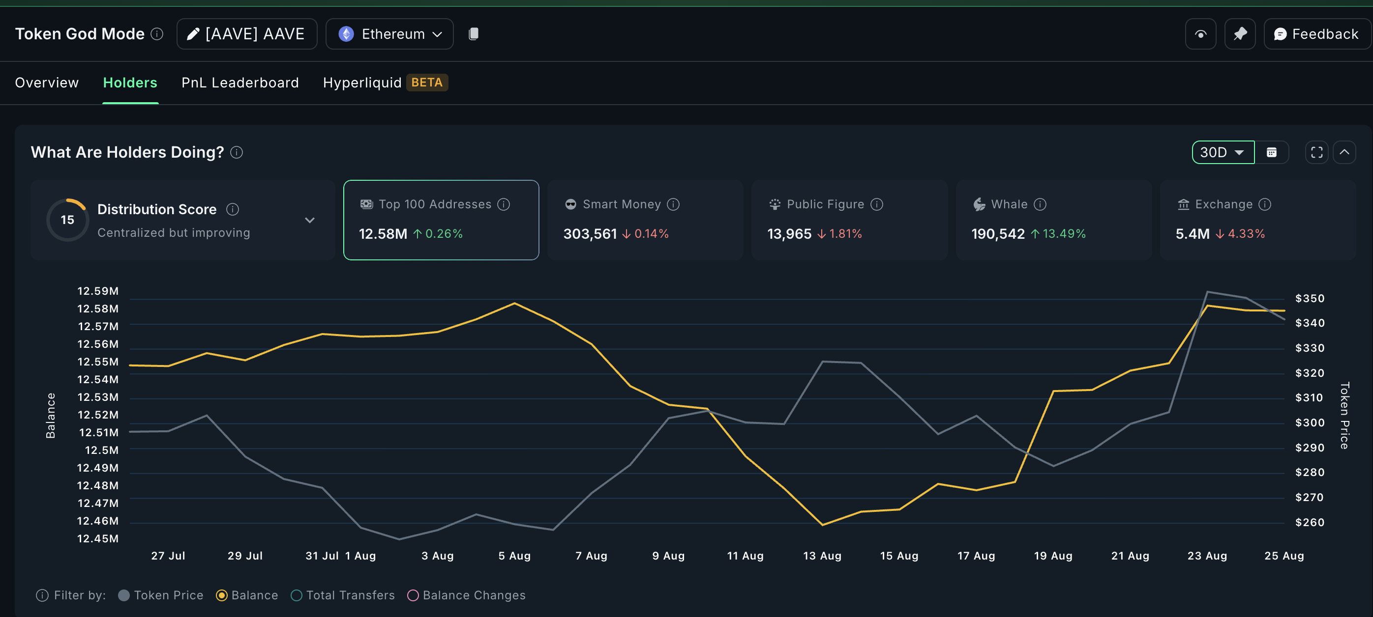 Việc các ví lớn thêm vào trong khi dự trữ trên sàn giảm thường báo hiệu sự tự tin từ những người chơi có túi tiền lớn, điều này có thể giải thích tại sao giá AAVE giảm do WLFI bị hạn chế.