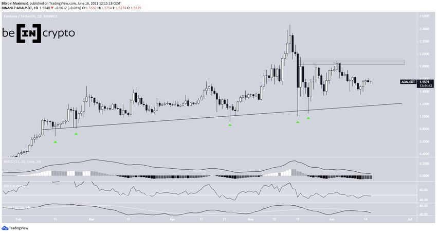 ADA đã đi xuống kể từ khi chạm mức giá ATH là 2.46 USD vào ngày 16 tháng 5.