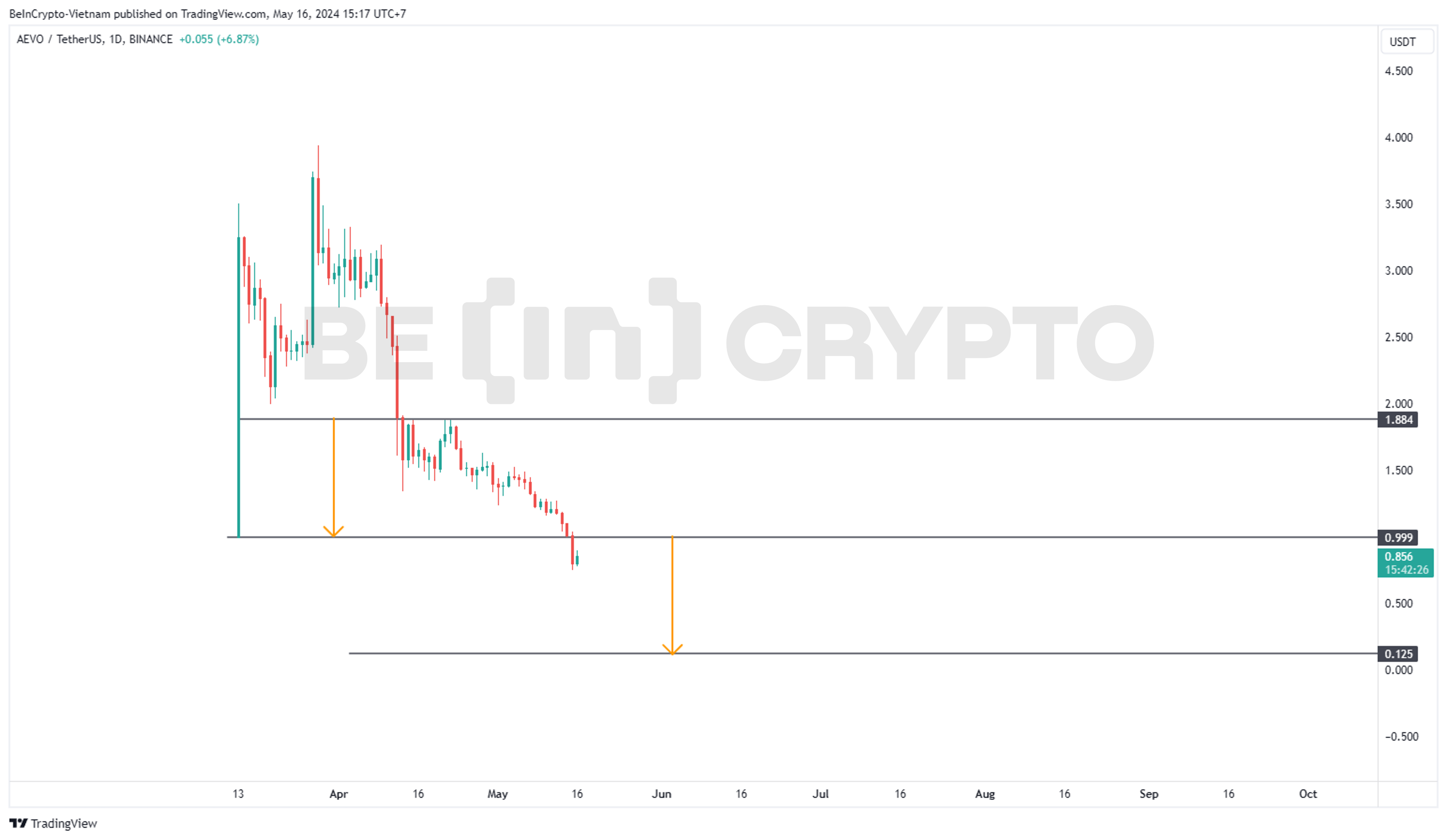 Dưới góc nhìn kỹ thuật, khả năng AEVO sẽ còn giảm về 0.125 USD. Tuy nhiên, hiện đây là dự án rủi ro cao khi nguồn cung unlock bất thường và ồ ạt trong bối cảnh thị trường Altcoin chưa thể phục hồi trở lại.