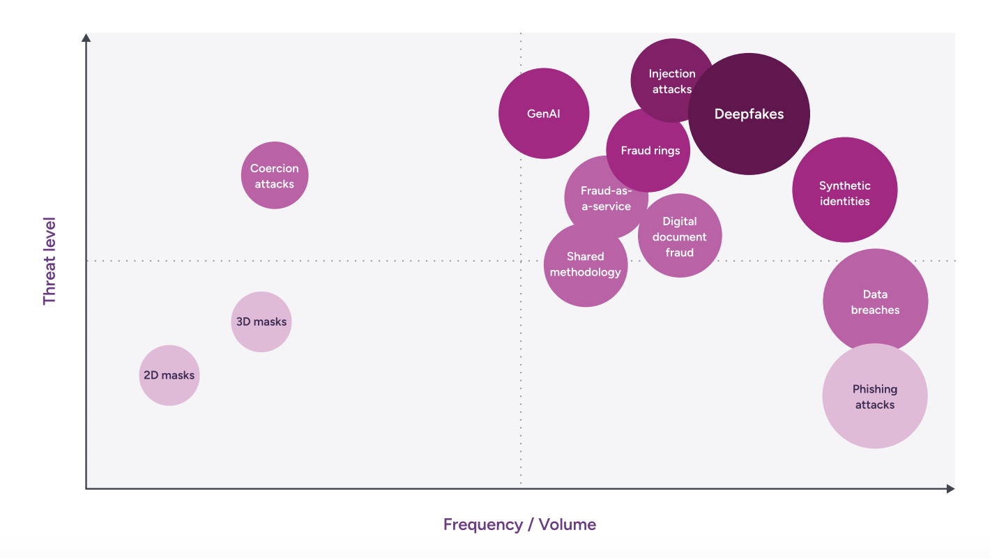 Theo một báo cáo của Entrust, các tài liệu giả mạo kỹ thuật số được hỗ trợ bởi các công cụ AI hiện đã vượt qua các bản giả mạo vật lý, với mức tăng 244% so với năm trước vào năm 2024. Trong khi đó, deepfake chiếm 40% tổng số gian lận sinh trắc học.