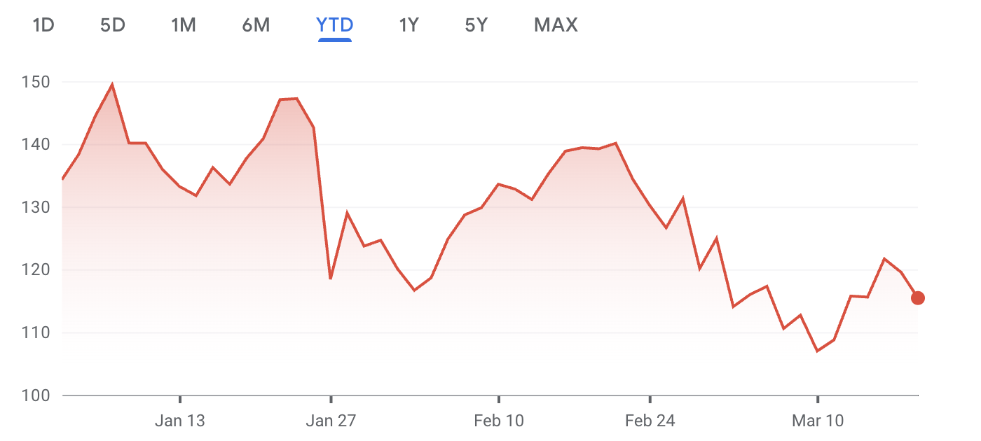 Sự sụt giảm diễn ra trong bối cảnh thị trường rộng lớn hơn đang gặp khó khăn, với các cổ phiếu công nghệ chịu áp lực từ sự không chắc chắn về kinh tế vĩ mô và sự thay đổi trong tâm lý nhà đầu tư.