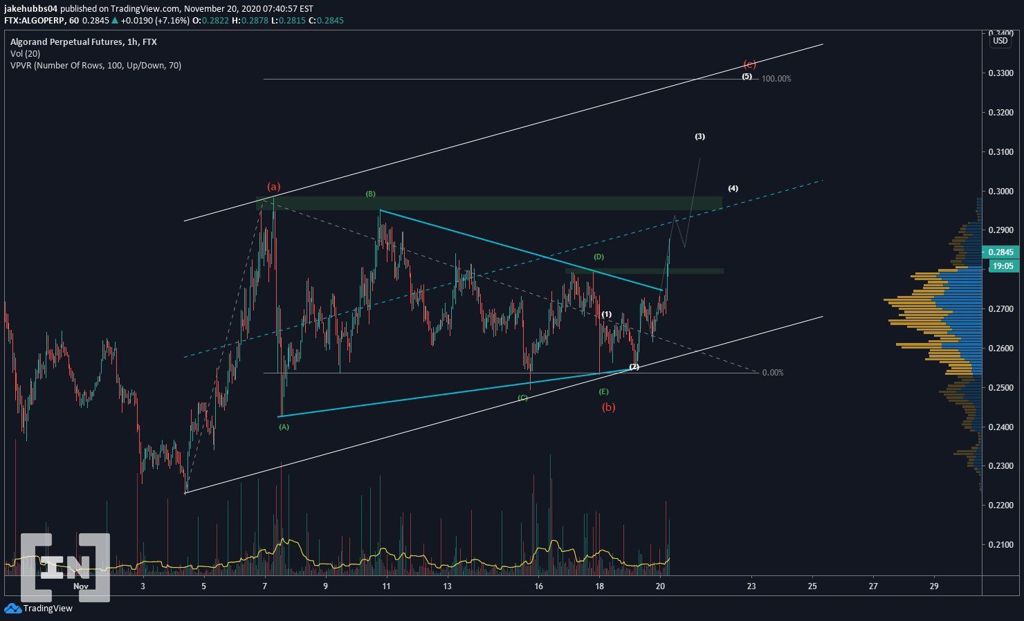 Theo chuyên gia Crypto TheTradinghubb đã phân tích kỹ thuật số lượng sóng của ALGO. Theo đó, giá đang được giao dịch ở mức 0,35 USD.