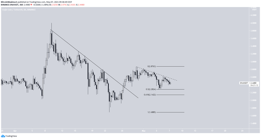 Kể từ ngày 23 tháng 4, giá của ENJ đã bắt đầu tăng trở lại. Trước đó vào đầu giờ ngày 8 tháng 4, ENJ đã phá vỡ đường kháng cự giảm dần. Sau đó nó nhanh chóng chạm đỉnh vào ngày 9 tháng 4.