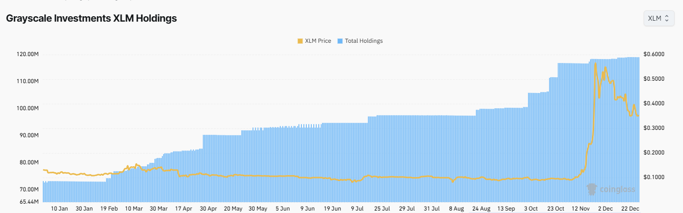 Trong hai tháng cuối năm, giá XLM đã tăng 600% trong sự ngỡ ngàng của nhiều nhà đầu tư. Sản phẩm Grayscale Stellar Lumens Trust của Grayscale đã nộp hồ sơ 10-K cho năm tài chính kết thúc vào ngày tháng 9/2024. Dữ liệu RWA.xyz cũng cho biết Stellar là blockchain xếp sau Ethereum về tổng giá trị tài sản thực được mã hóa trên chuỗi.