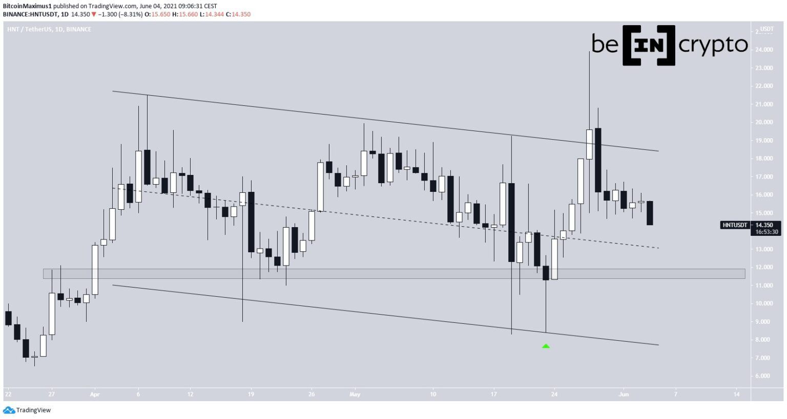 Giá của HNT đã dao động bên trong một kênh giá song song giảm dần kể từ ngày 7 tháng 4. Giá HNT đã bật tăng trở lại tại đường hỗ trợ của kênh vào ngày 23 tháng 5 (điểm màu xanh lá cây). Giá HNT đã bước vào xu hướng tăng sau đó.