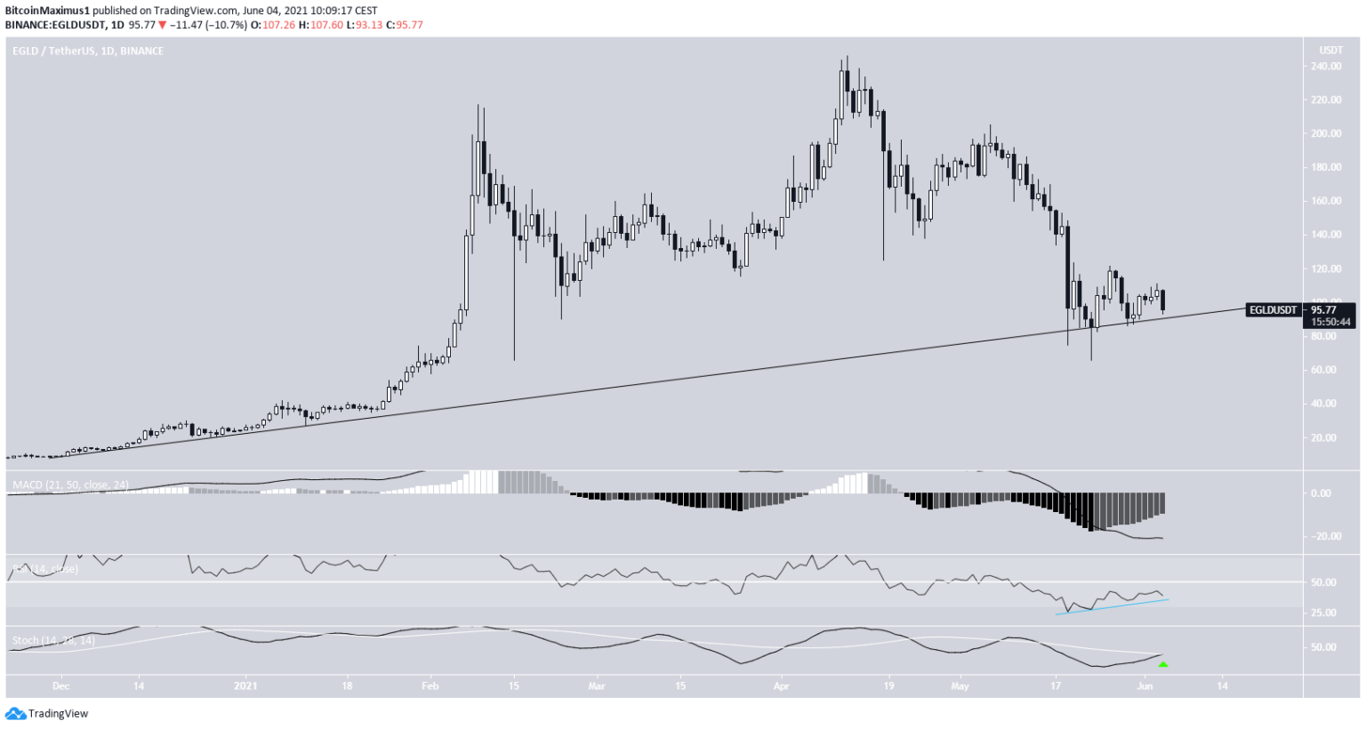 Xu hướng giảm đã đưa EGLD trở lại đường hỗ trợ tăng dần dài hạn được hình thành từ tháng 11 năm 2020. Đây là lần thứ 6 giá EGLD chạm đường hỗ trợ này.