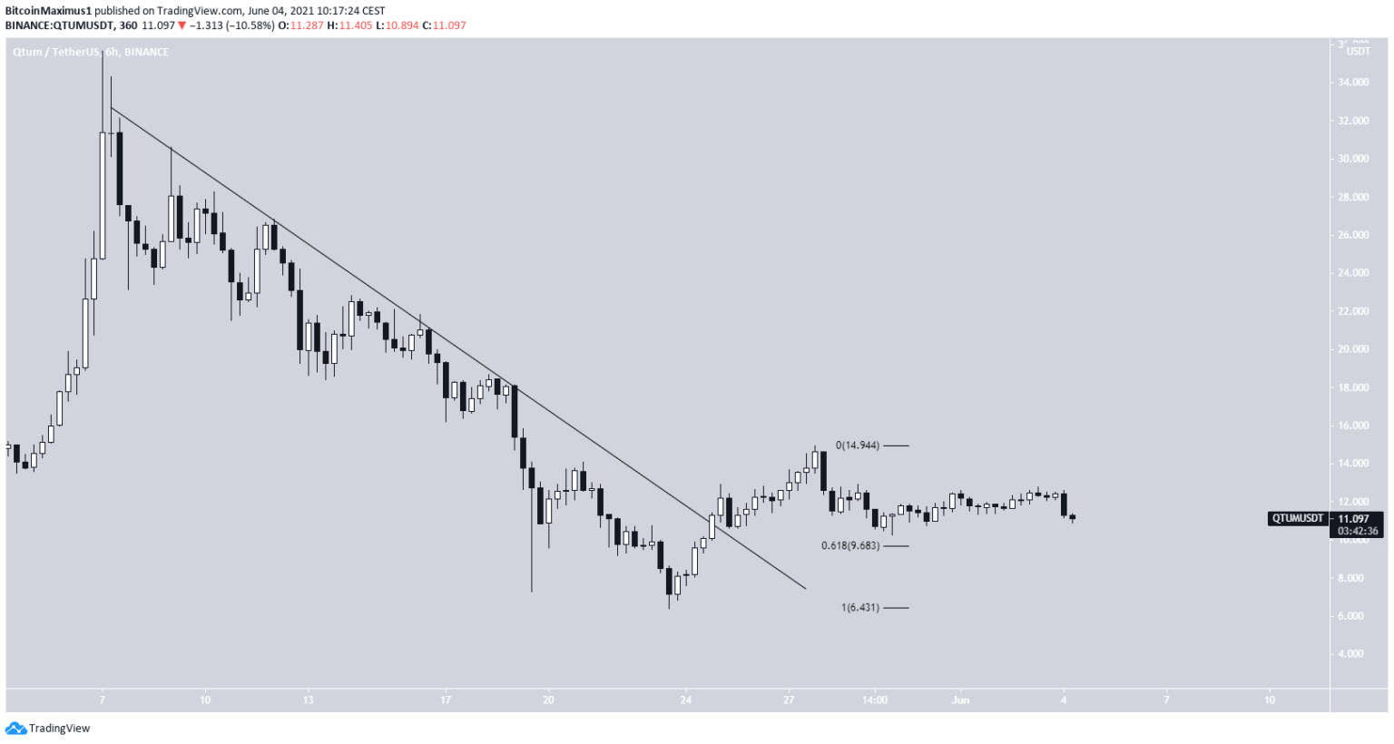 QTUM đã biến động dọc theo đường kháng cự giảm dần kể từ khi đạt mức giá cao nhất lịch sử vào ngày 7 tháng 5. QTUM đã cố gắng bứt phá vào ngày 24 tháng 5, nhưng xu hướng tăng không thể duy trì.