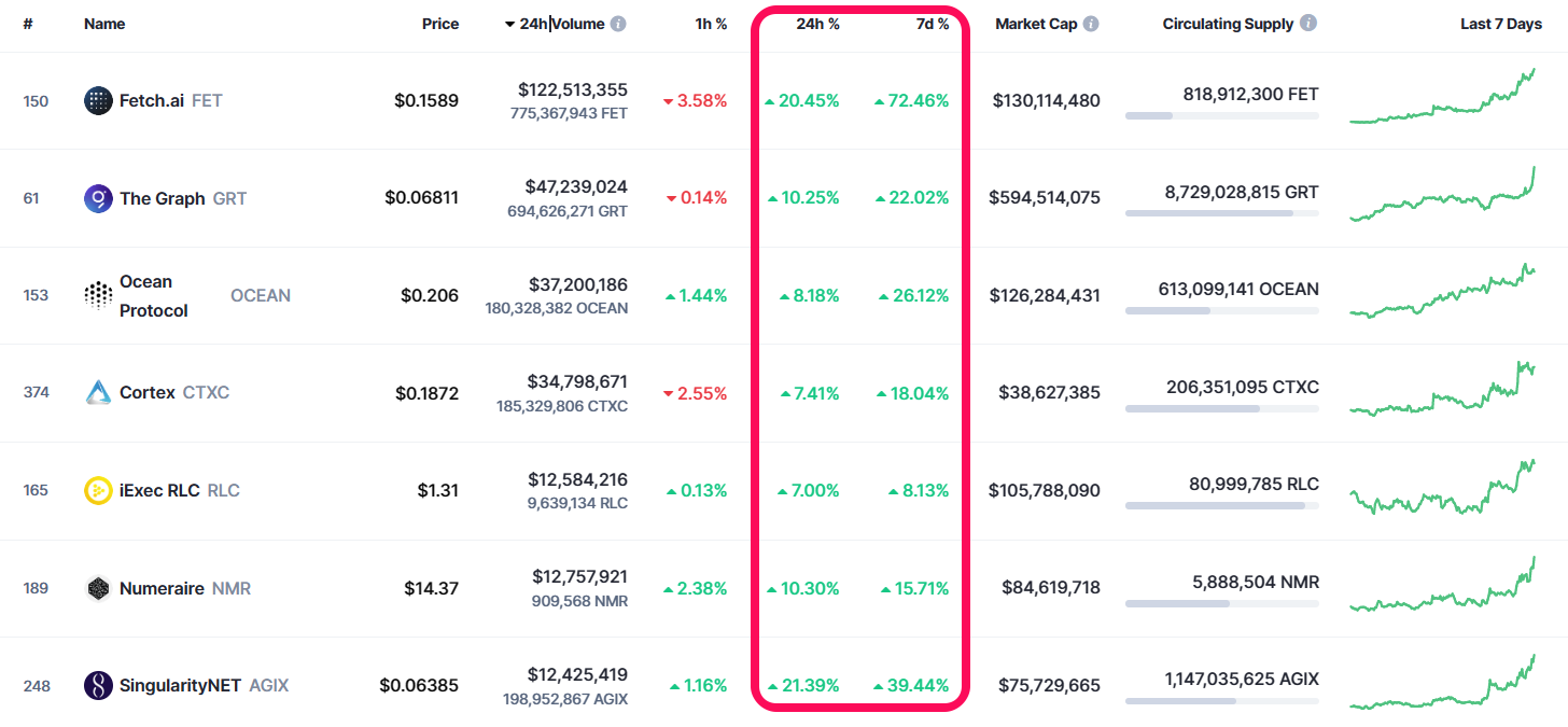 - Làn sóng quan tâm đến AI nhờ sự bùng nổ người dùng của ChatGPT đã lây lan khắp toàn cầu. Từ đó, những dự án Crypto nào có liên quan đến AI cũng được quan tâm theo.