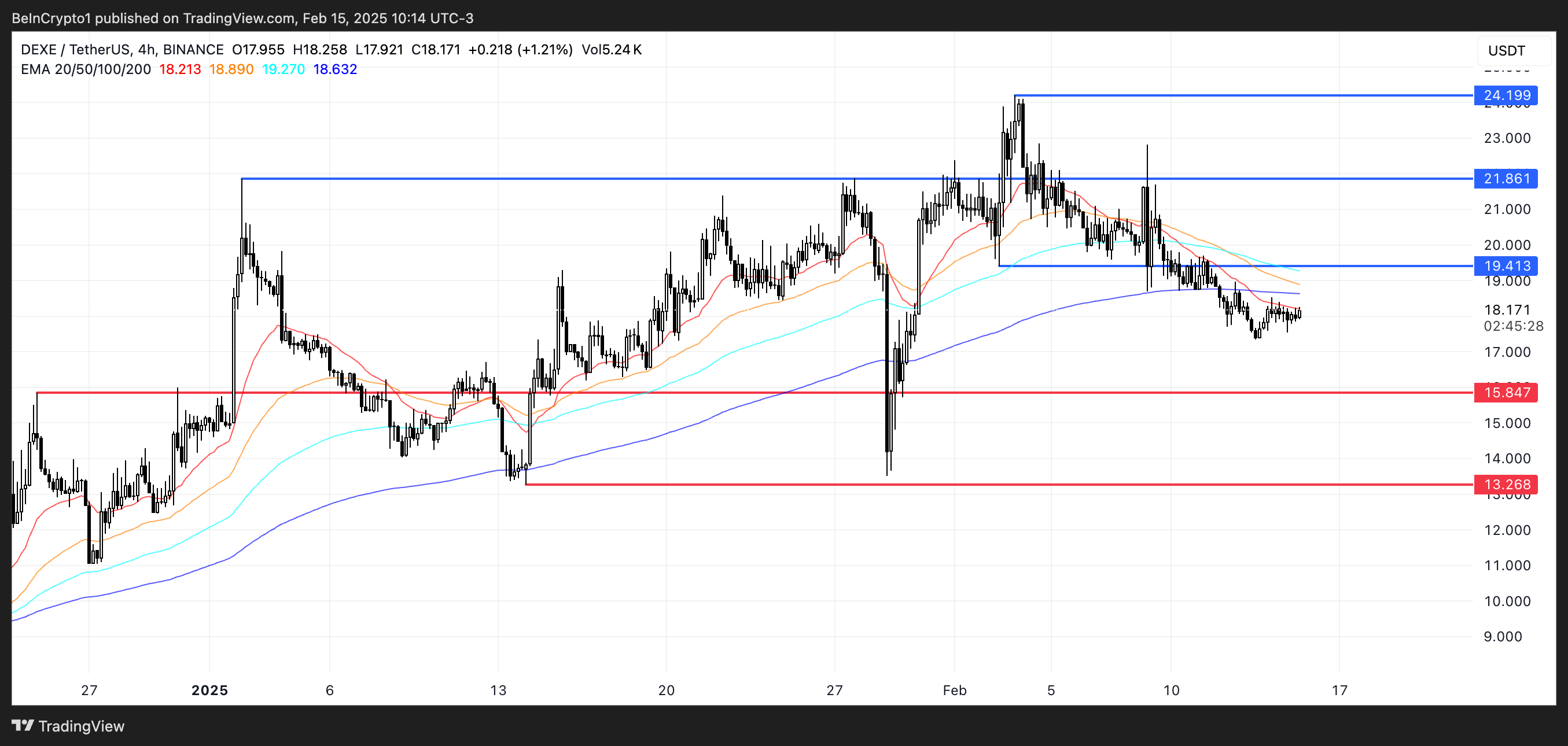 Được xây dựng trên blockchain Ethereum, DEXE đã đạt mức giá cao nhất kể từ năm 2021 vào ngày 05/02. Tuy nhiên, sau khi đạt đỉnh, nó đã bước vào giai đoạn điều chỉnh, với áp lực bán vượt trội so với động lực mua.