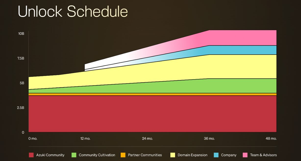 Lực bán mạnh của ANIME được cho là đến từ việc dự án mở khóa hoàn toàn 37.5% tổng cung dành cho Azuki Community. Và còn mở khóa thêm 2% tổng cung cho các đối tác cộng đồng (Partner Communities). Ngoài ra, các đối tượng như Community Cultivation và Foundation cũng nhận được một phần token. Điều này khiến cho nguồn cung lưu thông ban đầu rất lớn.