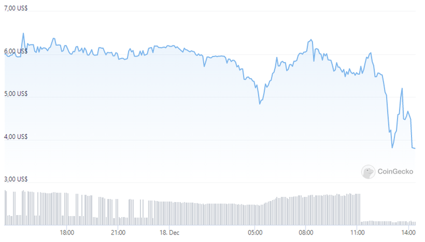 Giá fan token ARG đã bắt đầu giao dịch trong ngày trong phạm vi 6 USD. Tuy nhiên, vào thời điểm BeInCrypto viết bài, giá ARG đang giao dịch ở mức 3.61 USD, ghi nhận mức giảm 40% trong 24 giờ qua, theo dữ liệu từ CoinGecko.