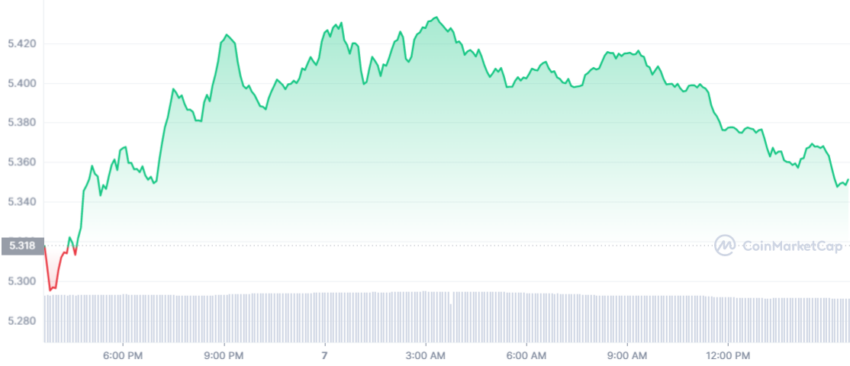 Token gốc BAL của Balancer dường như không bị ảnh hưởng bởi mối đe dọa Balancer bị hack mà chúng ta đã nhắc đến ở trên. Theo dữ liệu của CoinMarketCap, giá BAL đã tăng 0.62% lên 5.35 USD vào thời điểm BeInCrypto viết bài. Tuy nhiên, khối lượng giao dịch của nó đã giảm khoảng 7% trong khung thời gian.