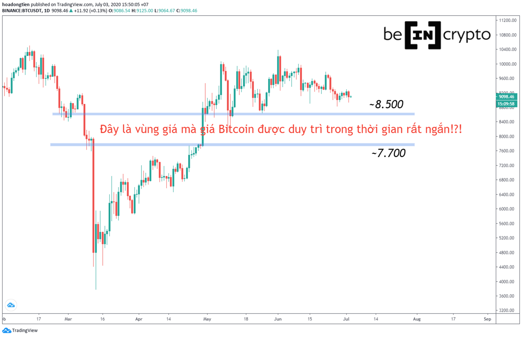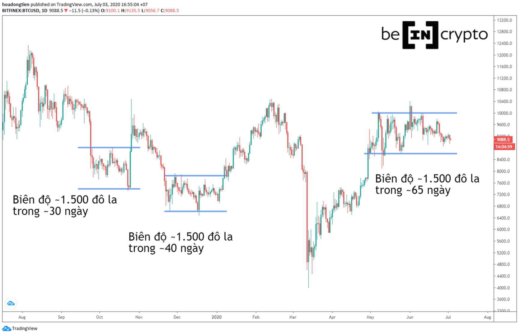 Nếu nói Bitcoin biến động ngang thì cũng chưa chính xác lắm. Vì biên độ của biến động gần đến trong khoảng 1.500 đô la. Một biên độ đáng kể để giao dịch.